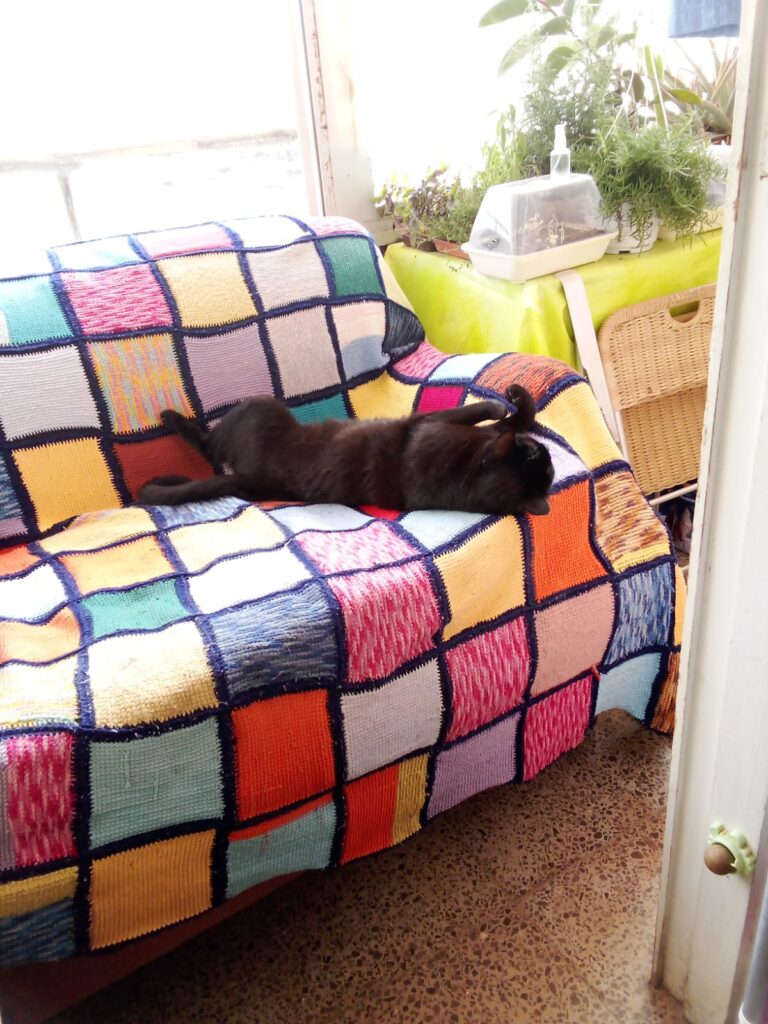Es ist Sonntag der 27. Juli 2025. Ich sitze wieder auf dem Sofa, am Fenster und arbeite an meiner Häkeldecke. Coco liegt neben mir und schläft . Ich kann nicht anders, ich MUSS ihn fotografieren.