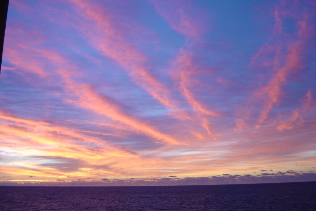 Der Sonnenuntergang zaubert dann farbige Wolken auf den Himmel